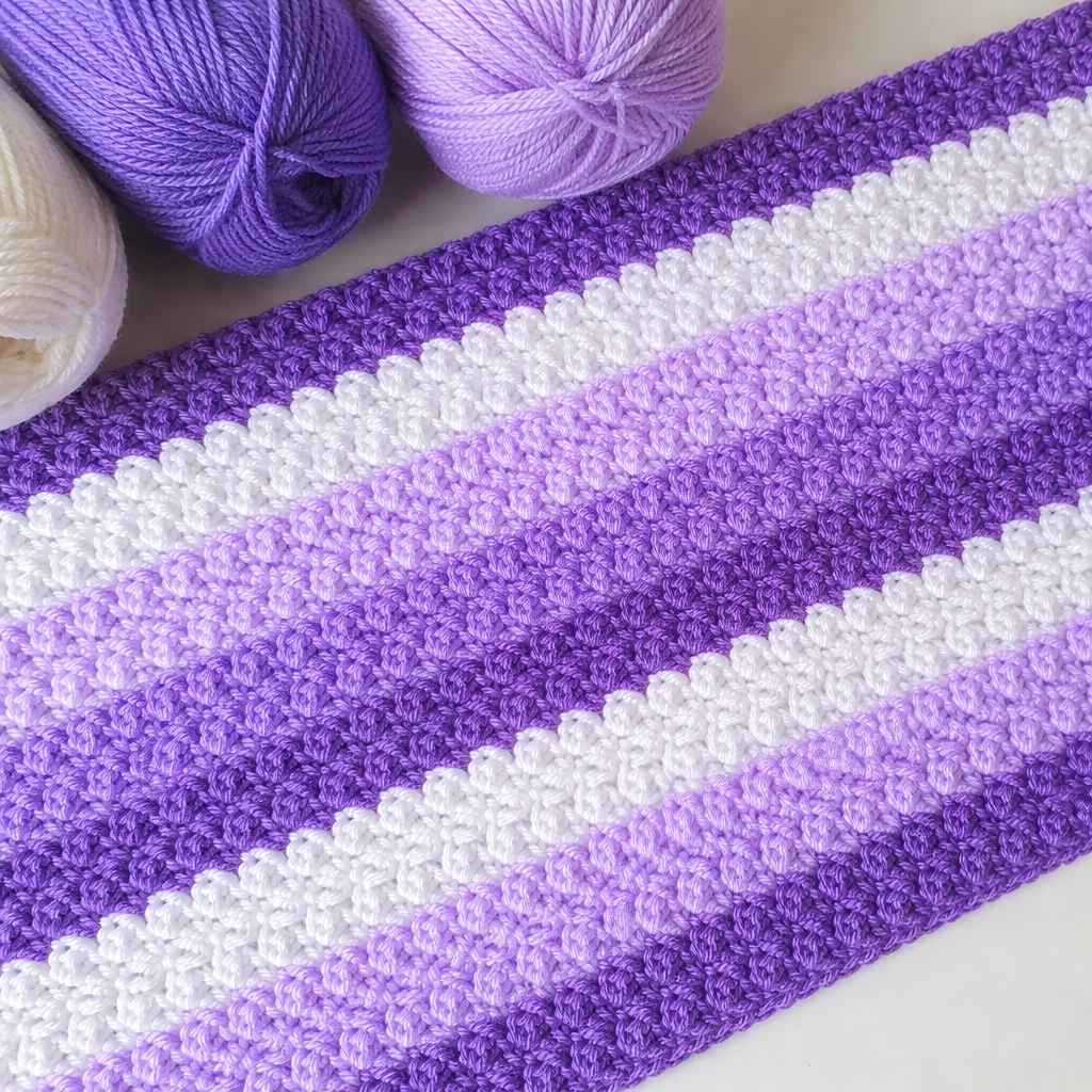 6 rows Plum Wine, 6 rows White, 6 rows Light Country Peach, 6 rows Soft Pink, 6 rows Pumpkin, 6 rows Soft Pink, 6 rows Light Country Peach, 6 rows White, 6 rows Plum Wine