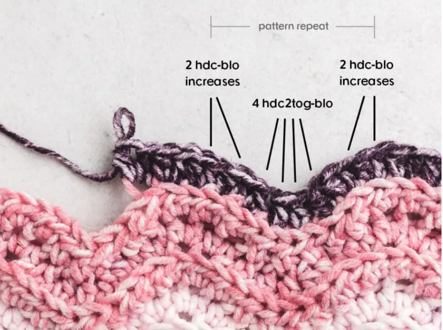 Invisible HDC Decrease: In this pattern, I suggest using a variation of the standard hdc2tog called the “Invisible hdc2tog-blo.”