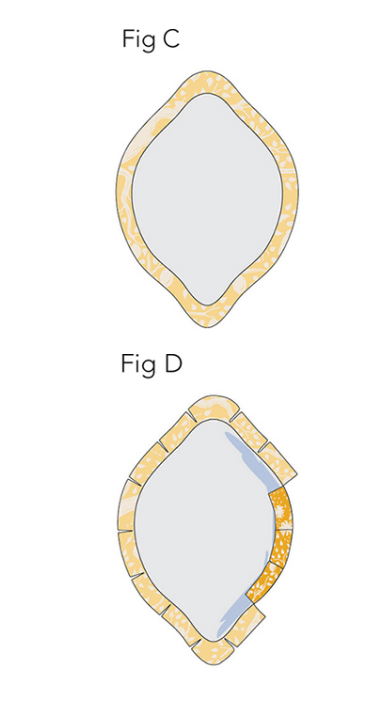 Utilize pre-cut paper shapes by copying individual pattern shapes onto thick, coated paper. Cut these shapes out. Using a paper pattern, cut fabric shapes about ¼ inch (6 mm) larger than the paper shapes (Refer to Figure C). Snip notches on the fabric edges. Apply a small amount of glue along the paper edge and fold the fabric seam allowance over the paper shape (Refer to Figure D). Repeat this process for all shapes.